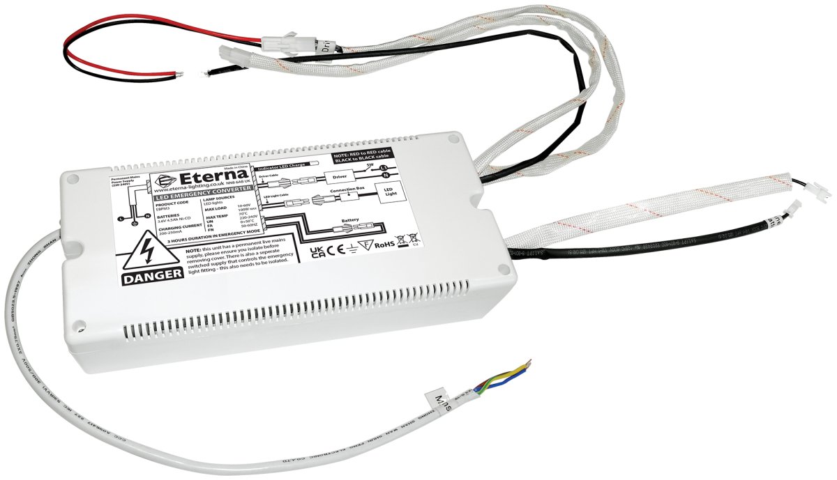 Enables LED panel lights to be converted into emergency luminaires, rated at 10-60V 100W max