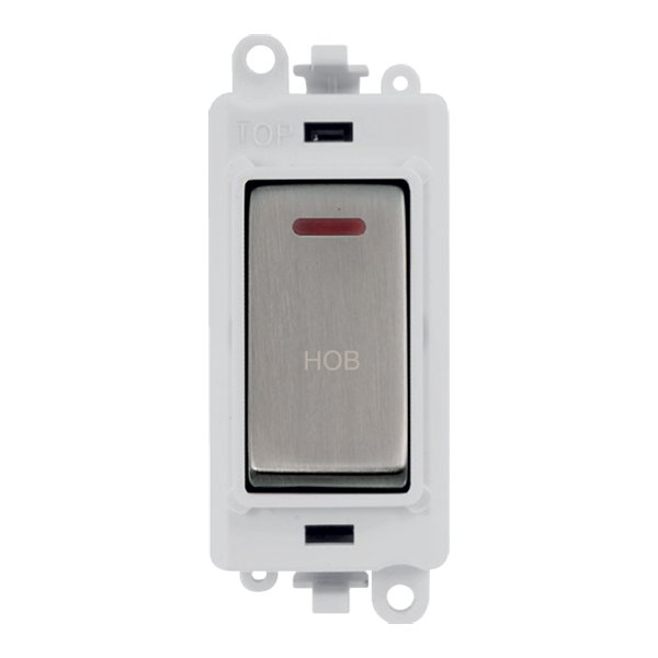 Click GridPro 20Ax Double Pole Switch With Led Module Polar White Stainless Steel Hob