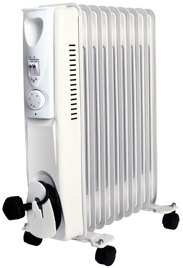 Free-standing 2kW, compact and quiet oil-filled heater optimised for heat storage, with 4 wheels for easy manoeuvrability. Comes with three heat settings and adjustable thermostat for control. Provides peace of mind with overheat protection and a tip-over safety switch. Keeps things tidy with an integral store for the 1.5m cord and plug. Ideal for domestic and office environments