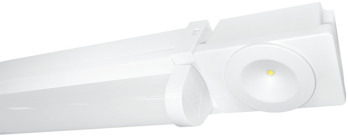 4ft LED highly efficient traditional style batten fixture, slim profile design with even light distribution, front diffuser and end caps removable to allow for easy wiring at either end of the batten or Besa mounting from the rear of the fitting, comes complete with bolt on Emergency downlight attached at the end of the fitting