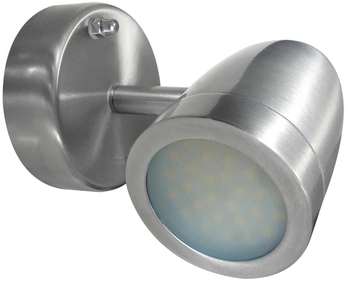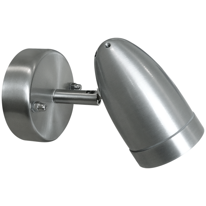 Aluminium LED wall spot light in satin nickel finish with a frosted glass lens is a simple option for up or downlighting. Additionally the LED lamp head is fully adjustable to direct the light where needed