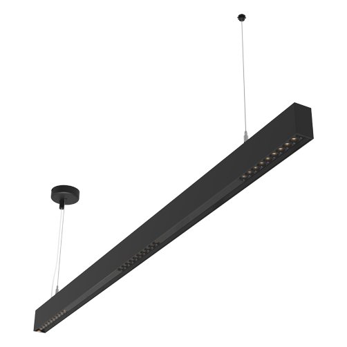 Architectural slim profile suspended linear, black powder coated for modern sleek appearance. Black polycarbonate reflector with individual optics helps to achieve UGR<19. Supplied with 1.5 metre suspension kit as standard. 1-10V dimmable as standard. Ideal for commercial offices and retail applications.