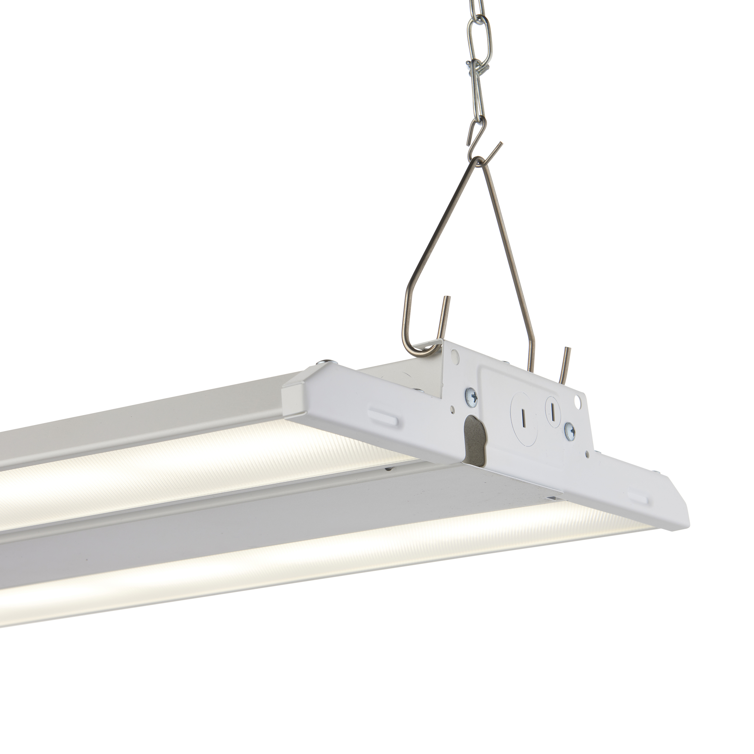 The Apollo low-bay light from Saxby Lighting is designed to meet the demands of modern commercial spaces with unmatched efficiency and adaptability. Available in both 100W and 150W options, Apollo delivers up to an impressive 21,000 lumens at 140 lumens per watt, ensuring bright and energy-efficient illumination. Its suspension kit allows for adjustable height, making it a perfect fit for various ceiling heights and configurations. For added safety and convenience, emergency versions are available, and a microwave sensor accessory can be integrated to enhance functionality across all commercial applications