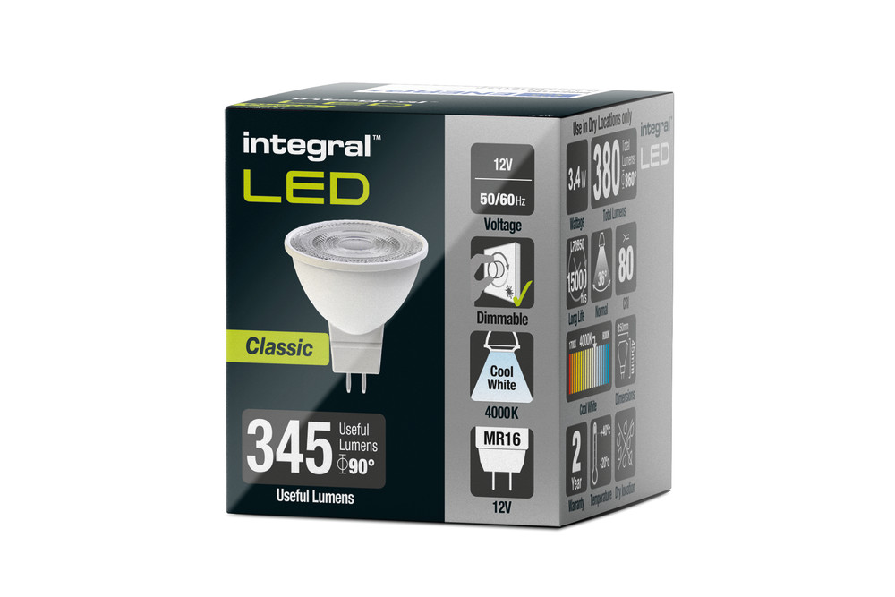 The Integral LED Classic MR16 range offers a fantastic ratio of value and performance. By incorporating a stylish engineered lens in an affordable spotlight, the Classic offers directional light with a beam angle that closely mirrors that of familiar halogen lamps along with all the energy-saving and long-life benefits of LED.