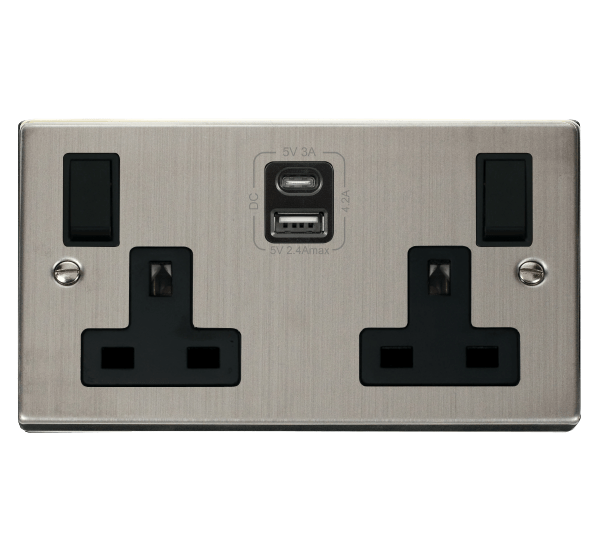 Click Deco 2G 13A Switch Skt 4.2A A&C Usb Vpss Bk
