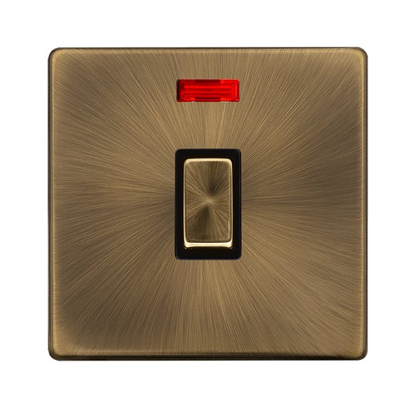 Click Definity Complete 20A Ingot Double Pole Switch With Neon Antique Brass Cover Plate Black Insert