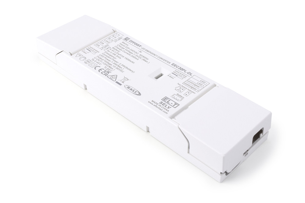 The DALI-enabled Emergency Conversion Kit allows existing lighting systems to be converted to emergency operation. It provides 3 hours of backup power and includes a remote LED indicator for monitoring. Its DALI functionality ensures that it integrates seamlessly into modern lighting systems.
