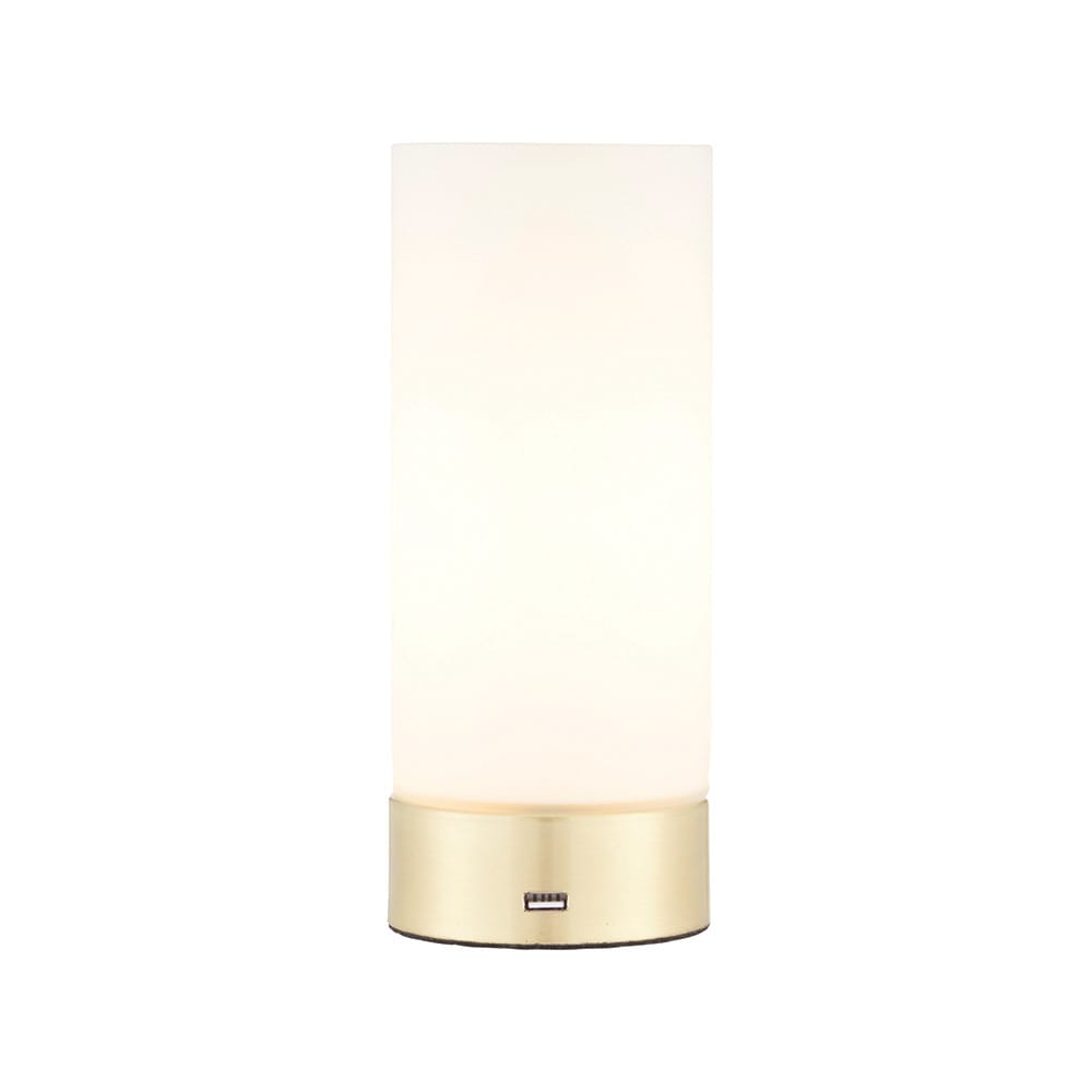 A sleek dual purpose table light finished in a brushed brass effect plate, with a matt opal glass shade. This light is operated by clever 3 stage touch technology, plus has the addition of a discreet USB port meaning it can charge your devices too