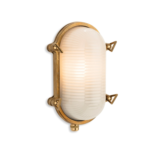 Traditional solid brass ship style bulkhead with frosted glass. Attractive and practical it is suitable for both indoor and outdoor use.