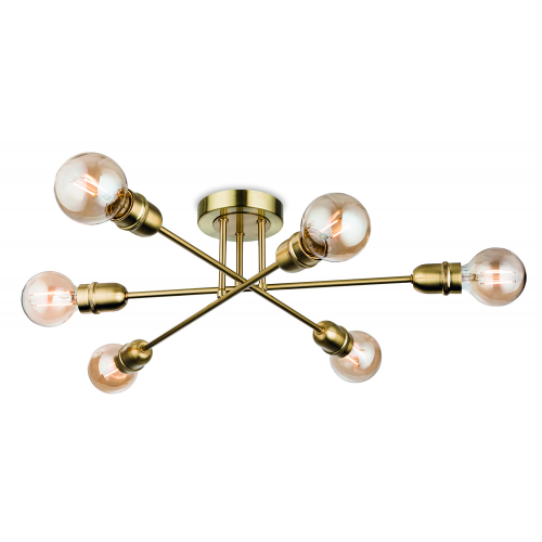 Splendid modern fitting with 6 lampholders. Featuring brushed brass metalwork it is also ideal for use with vintage lamps (model no. 5944).