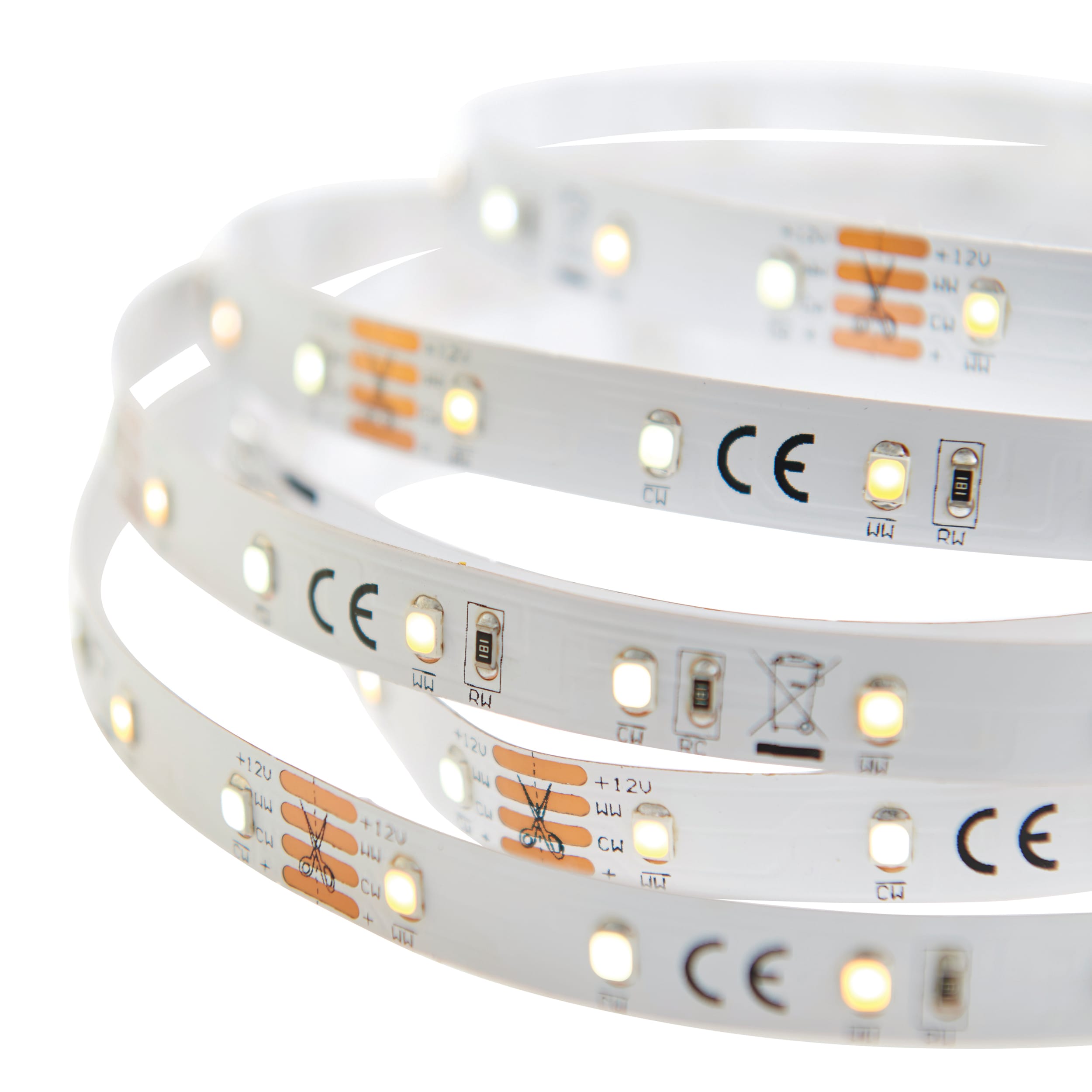 Flexible LED strip lighting kit, using Colour Changing Technology (CCT). Energy efficient and easy to install. The 24W LEDs produce up to 2100 lumens of warm white through to daylight white light at the press of a button using the supplied remote control. Ideal for kitchens, creating mood lighting indoors and illuminating cabinets