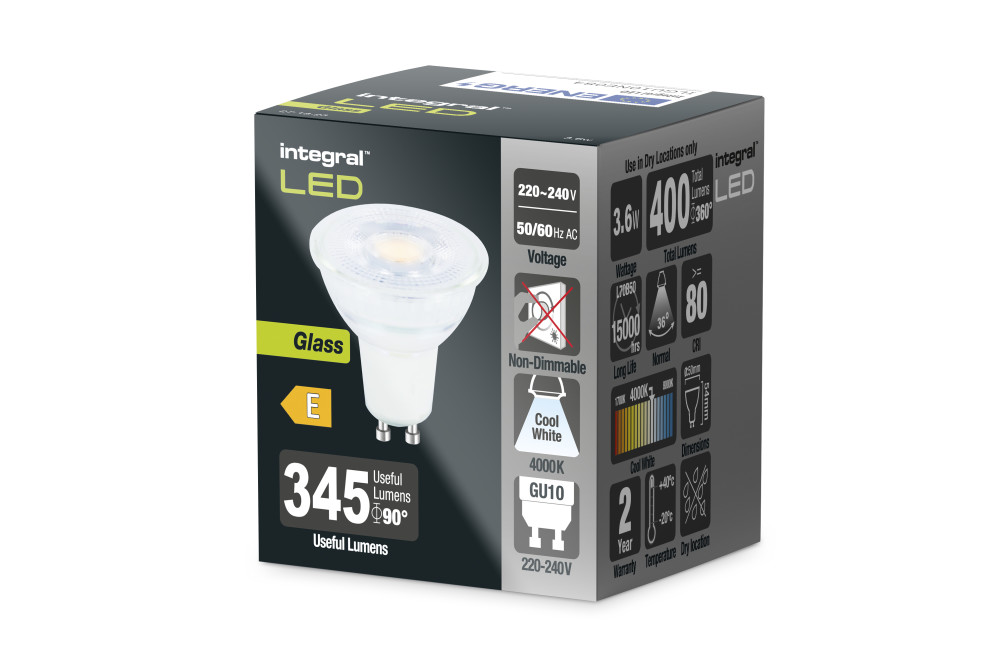 The glass body and cleverly engineered surface mounted LEDs of the Integral LED Glass GU10 range give them an attractive look that is very similar to traditional halogen lamps.These GU10 lamps will retrofit easily into existing fittings and provide significant energy savings and longer lifetime than the halogen lamps they are designed to replace.