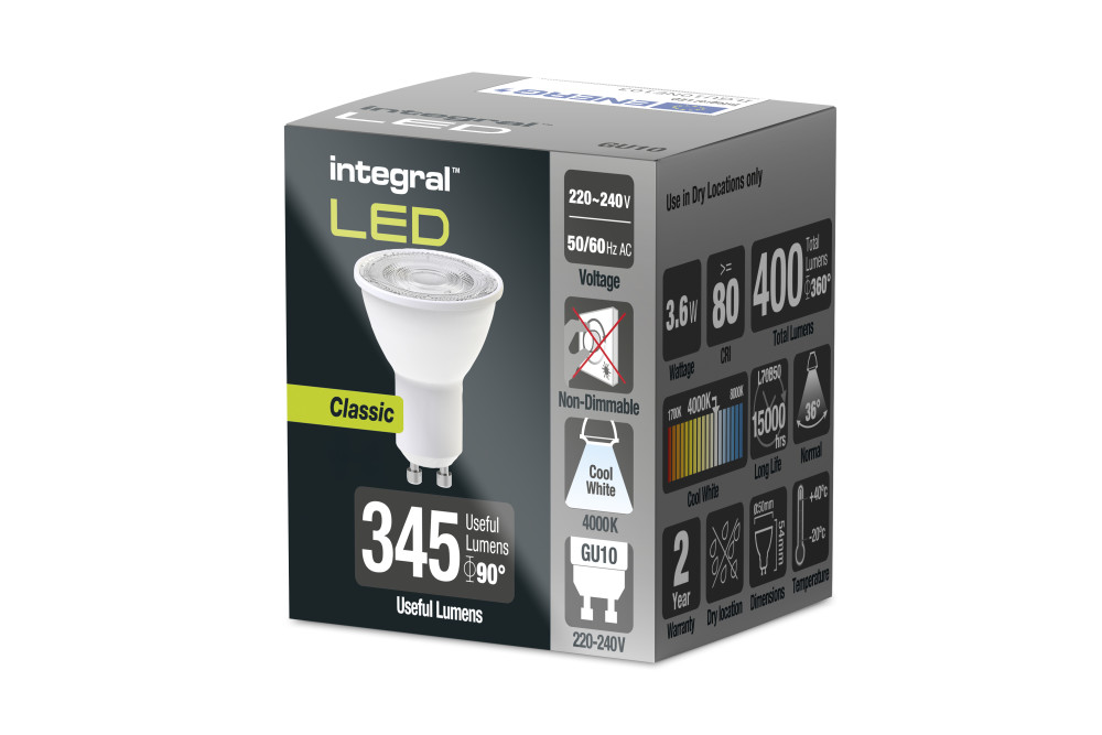 The Integral LED Classic GU10 range offers a fantastic ratio of value and performance. By incorporating a stylish engineered lens in an affordable GU10, the Classic offers directional light with a beam angle that closely mirrors that of familiar halogen lamps along with all the energy-saving and long-life benefits of LED.