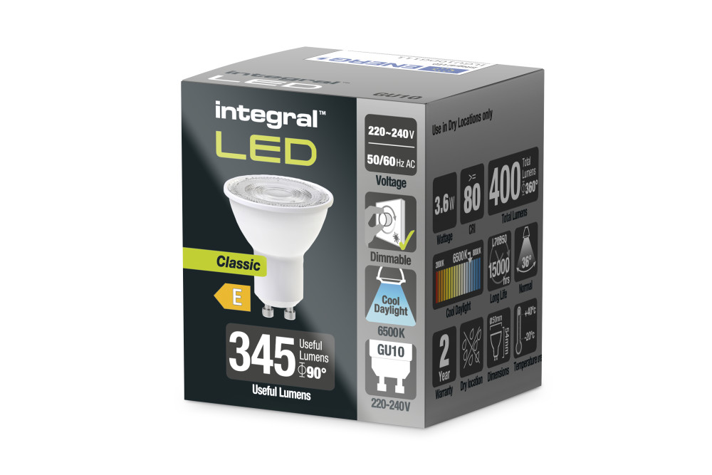The Integral LED Classic GU10 range offers a fantastic ratio of value and performance. By incorporating a stylish engineered lens in an affordable GU10, the Classic offers directional light with a beam angle that closely mirrors that of familiar halogen lamps along with all the energy-saving and long-life benefits of LED.