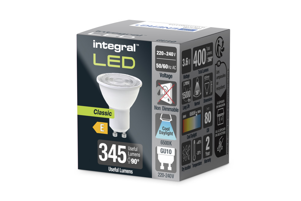 The Integral LED Classic GU10 range offers a fantastic ratio of value and performance. By incorporating a stylish engineered lens in an affordable GU10, the Classic offers directional light with a beam angle that closely mirrors that of familiar halogen lamps along with all the energy-saving and long-life benefits of LED.