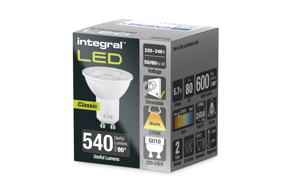 The Integral LED High Lumen GU10 range offers a fantastic ratio of value and performance. By incorporating a stylish engineered lens in an affordable GU10, the High Lumen offers directional light with a beam angle that closely mirrors that of familiar halogen lamps along with all the energy-saving and long-life benefits of LED.