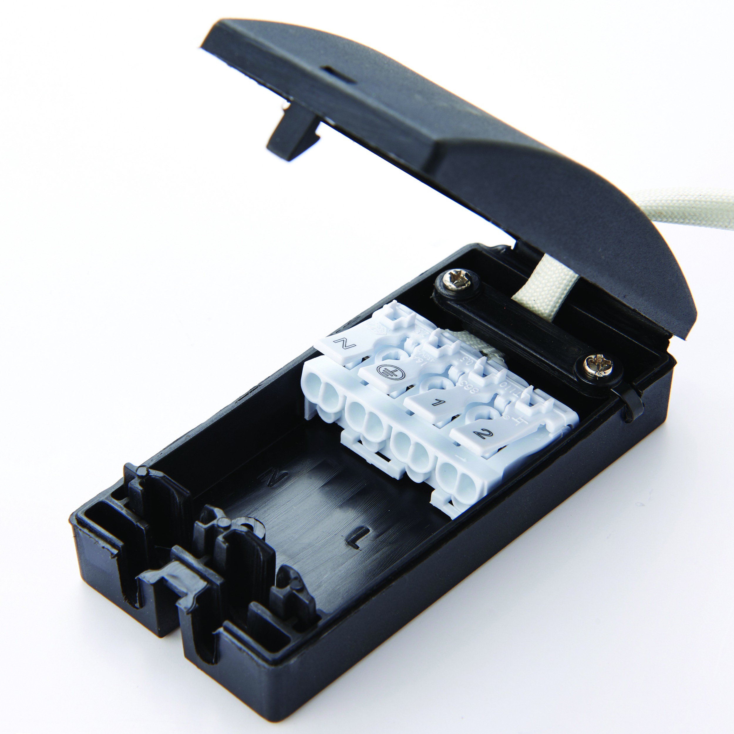 GU10 lampholder kit comes with a 4 way unique fast fix box to ensure quick and easy installation.