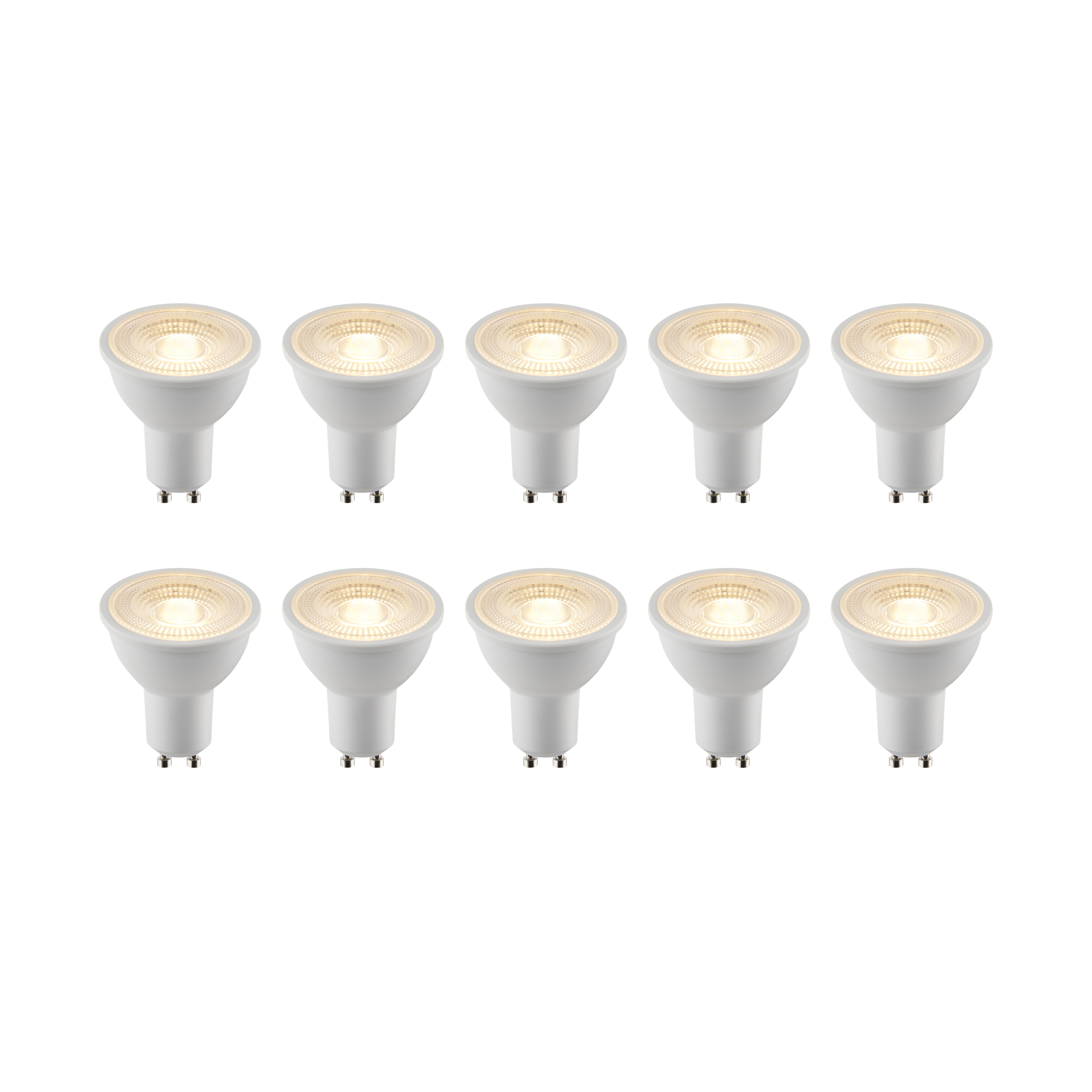 This dimmable 5W GU10 lamp has a beam angle of 60 degrees and can be used safely within enclosed heads with no reduction in performance or lifetime. The ideal choice for fire rated cans, aswell as outdoor and bathroom fittings. Other colour temperature options available. Available to purchase in singles or as a 10 packs