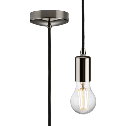 Contemporary style metal pendant lamp holder. Pre-wired to reduce time on installation. T2 rated 60W Incandescent / 8W LED E27 lamp base 1.8m drop Pre-wired Ceiling rose base Terminal capacity: 2 x 1.5mm² Certified to BS EN 60598-2-1, BS EN 60598-1NB: lamp not included