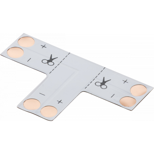 LED flex 3-way T-connector Single Colour Compatible with single colour, 8mm LED flex Can be cut and adapt to a right or left hand corner connector *Requires connectors. Compatible with LFCON2SS, LFCON2P, LFCON2FX or LFCONSS2P