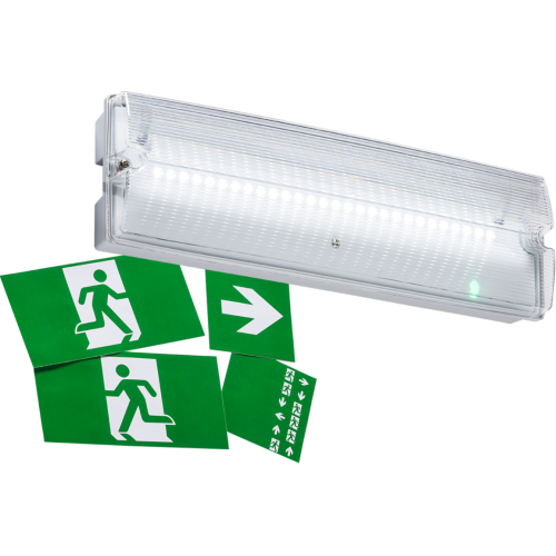 LED emergency bulkhead that can be configured for maintained and non-maintained use, with minimum of 3 hour emergency illumination. Polycarbonate body and diffuser, with IP65 properties, suitable for indoor and outdoor use. Ideal for emergency illuminating of exit routes. 3 hour emergency Maintained and non-maintained use Robust polycarbonate construction Easy installation via hinged gear tray and push-fit connector block Supplied with self-adhesive legend kit LiFePO4 battery