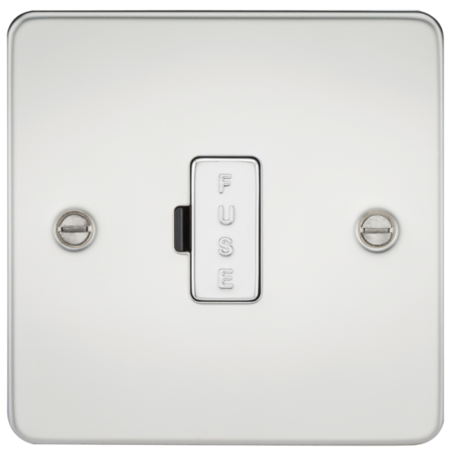 Fused spur solution in Flat Plate low profile metal design with matching fuse holder. – 13A rated- Ultra low profile design with built in gasket- Certified to BS 1363-4- Minimum mounting box depth 25mm