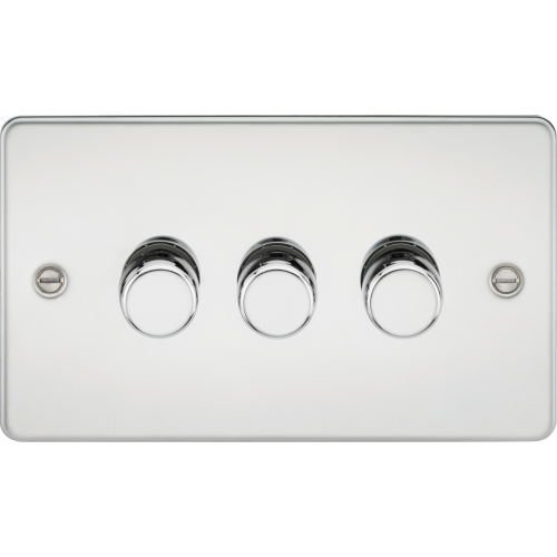 Perfect finishing touch to any modern home, Flat Plate low profile metal design with matching dimmer cap. Switch between Trailing-edge and Leading-edge modes, making this a highly compatible dimmer solution. Trim, switch modes and reset dimmer all from the front of the plate via the control knob – future proofing and making it easy to reset, re-adjust if there is a change of fitting or lamps Push On/Off, rotary dimming action Preset in Trailing-edge mode 10-200W (5-150W LED) Suitable for use with dimmable lamps only Overload and Overheat protection Fitted with an Inrush Current Limiter (ICL)NB: DO NOT USE IN A MIXED ENVIRONMENT i.e. difference brands of lamps or different wattages of lamps in same fitting