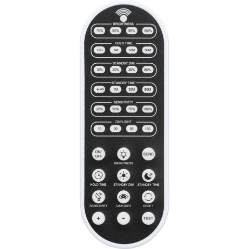 The POTHBRC enables the user to set various parameters to ensure sufficient illumination whilst maintaining tight control over energy efficiency.One remote can control multiple sensors.