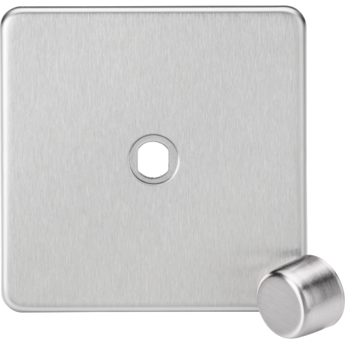 Perfect finishing touch to any modern home, flawless Screwless low profile metal design with matching dimmer cap. 1G dimmer plate and matching dimmer cap Unpopulated Screwless design with built in gasket Suitable for use with centre or offset dimmer modules