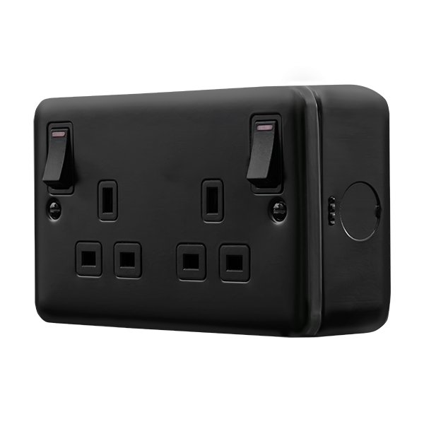 Click Metal Clad Pro 13A 2 Gang Double Pole Safety Shutter Outboard Switched Socket Outlet With Led Indication Black