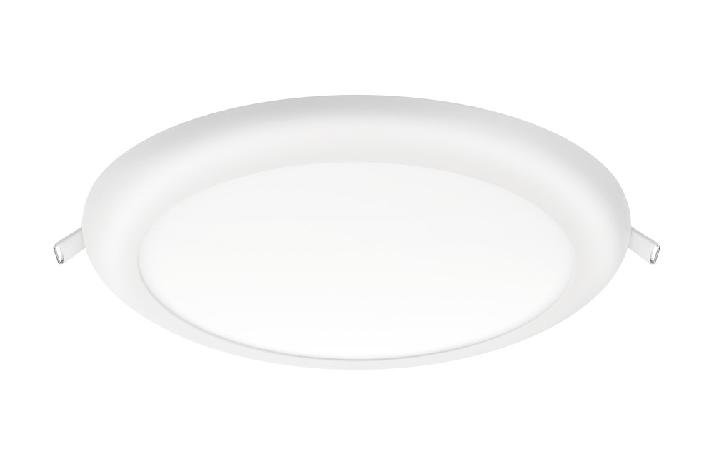 The downlight is supplied with configurable brackets and clips allowing for installation in a cut-out from 65-205mm as well as having a surface mount installation option. Visible flicker is eliminated with the integrated driver and a frosted diffuser provides uniform light.