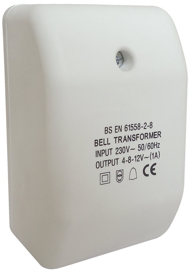 Multi Voltage Bell / Chime with 4, 8 and 12V tappings to suit most bells and chimes with a installation distance of 15m, 1A rated in a nylon construction with thermal cut out