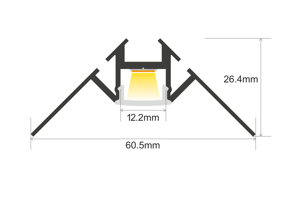 This corner mounted profile is designed to be plastered into inside corners of interior walls and ceilings. It is ideal for lighting applications including illuminating kitchens, bathrooms, toilets, changing rooms and similar rooms which have ceramic tiling.