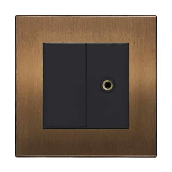 The Aura 3.5mm Audio Jack Plate provides a discreet and stylish solution for connecting audio equipment while keeping cable runs hidden neatly within the wall. Mounted on a Brushed Bronze Euro module plate, it delivers a seamless look that blends beautifully with modern interiors. Ideal for use in home audio systems, speaker setups, or media rooms, this plate helps maintain a clean, clutter-free space. As part of the Aura modular range, it pairs perfectly with other switches and sockets to create a cohesive, high-end finish.
