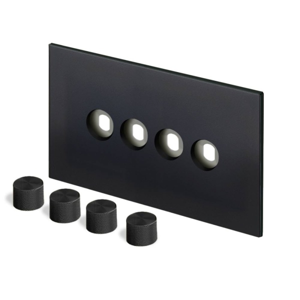 Designed for flexibility without compromising on style, the Aura Matt Black Dimmer Plate with Contrast Knurled Black Knob lets you achieve the signature look of the Retrotouch Aura collection while using the dimmer module of your choice. Whether you’re working with specialist or high-power lighting systems, this plate is compatible with a wide range of third-party dimmer modules—offering full control without sacrificing aesthetics. Crafted from premium materials with a striking two-tone finish, it brings a modern edge to any space. Perfect for projects where performance and design both matter.