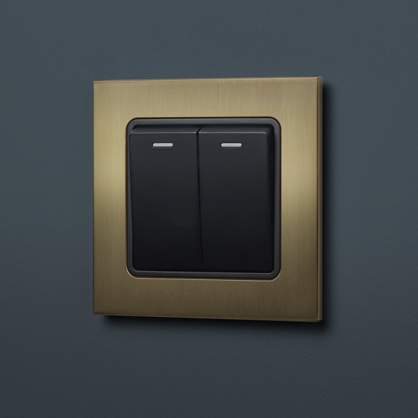 The Aura Double Light Switch in Brushed Brass blends contemporary style with practical innovation. Its sleek aluminium front panel and modern design offer a sophisticated, refined look for any interior. The two-stage modular system ensures a flawless installation—fit the base unit as standard, then clip on the front panel after painting and decorating for a crisp, mark-free finish. When it's time to refresh your d?cor, simply swap the front panel for a new colour—no rewiring required. Durable, stylish, and flexibility, this switch is ideal for homes, offices, and commercial spaces, providing ultimate flexibility and lasting elegance.
