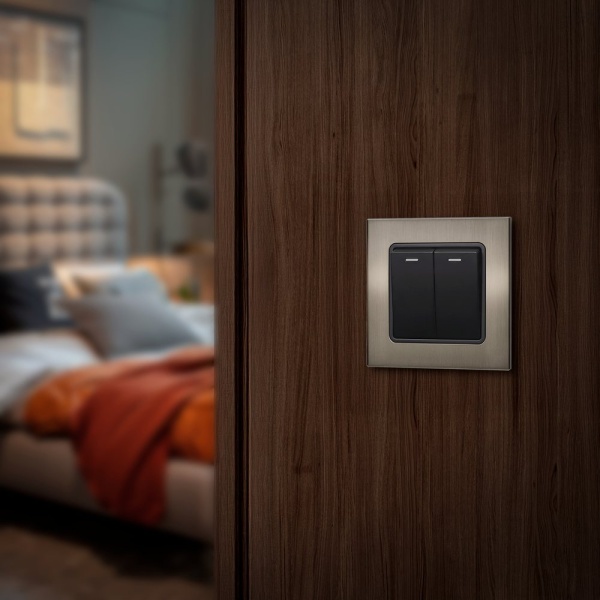 The Aura Double Light Switch in Brushed Nickel blends contemporary style with practical innovation. Its sleek aluminium front panel and modern design offer a sophisticated, refined look for any interior. The two-stage modular system ensures a flawless installation—fit the base unit as standard, then clip on the front panel after painting and decorating for a crisp, mark-free finish. When it's time to refresh your d?cor, simply swap the front panel for a new colour—no rewiring required. Durable, stylish, and future-proof, this switch is ideal for homes, offices, and commercial spaces, providing ultimate flexibility and lasting elegance.