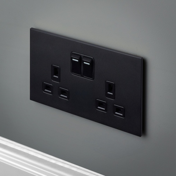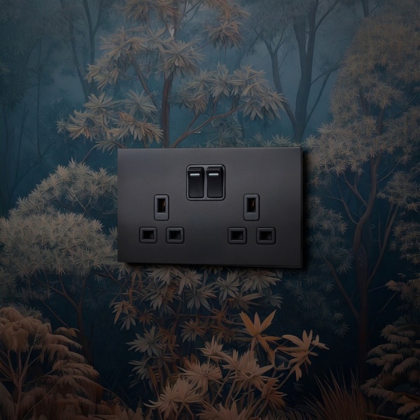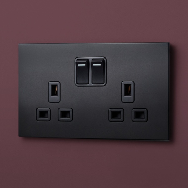 The Aura Switched Double Socket in Matt Black offers a perfect balance of style and practicality, designed to enhance any modern interior.