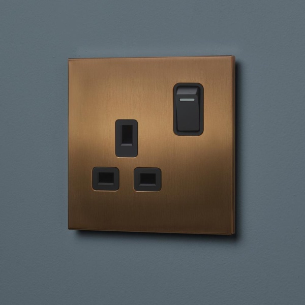 The Aura Switched Single Socket in Brushed Bronze offers a perfect balance of style and practicality, designed to enhance any modern interior.