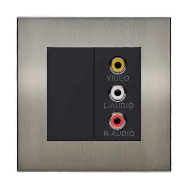 The Aura Triple RCA Outlet is the ideal solution for clean, in-wall audio and video connections, supporting composite video and stereo audio setups. Commonly used in home cinemas, media rooms, and AV installations, it allows for a professional finish while keeping cables hidden and organised. Housed in a sleek Brushed Nickel Euro module plate, it perfectly matches the rest of the Aura modular range for a cohesive, high-end aesthetic. Designed for simple installation and long-term reliability, this outlet blends performance with premium design.