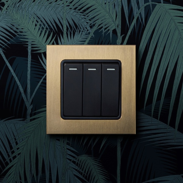 The Aura 3 Gang Light Switch in Brushed Brass blends contemporary style with practical innovation. Its sleek aluminium front panel and modern design offer a sophisticated, refined look for any interior. The two-stage modular system ensures a flawless installation—fit the base unit as standard, then clip on the front panel after painting and decorating for a crisp, mark-free finish. When it's time to refresh your d?cor, simply swap the front panel for a new colour—no rewiring required. Durable, stylish, and flexibility, this switch is ideal for homes, offices, and commercial spaces, providing ultimate flexibility and lasting elegance.