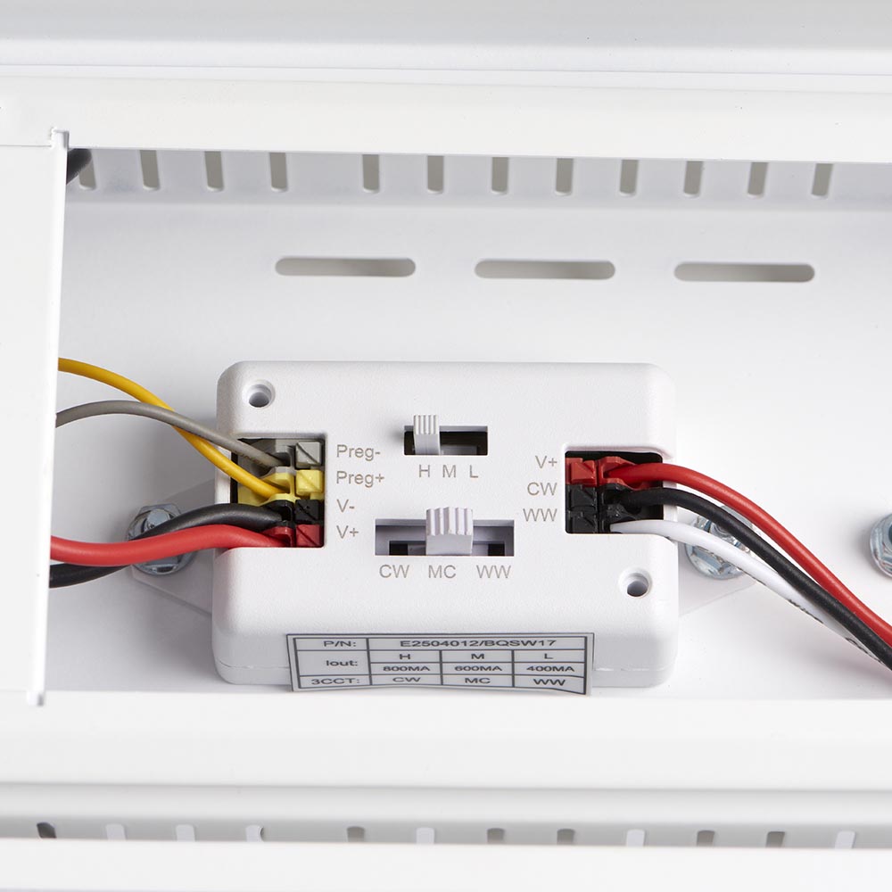 The Apollo low-bay light from Saxby Lighting is designed to meet the demands of modern commercial spaces with unmatched efficiency and adaptability. This upgraded version is CCT wattage selectable; choose from 3000K, 4000K or 5000K and 100W, 150W and 200W! Its suspension kit allows for adjustable height, making it a perfect fit for various ceiling heights and configurations.