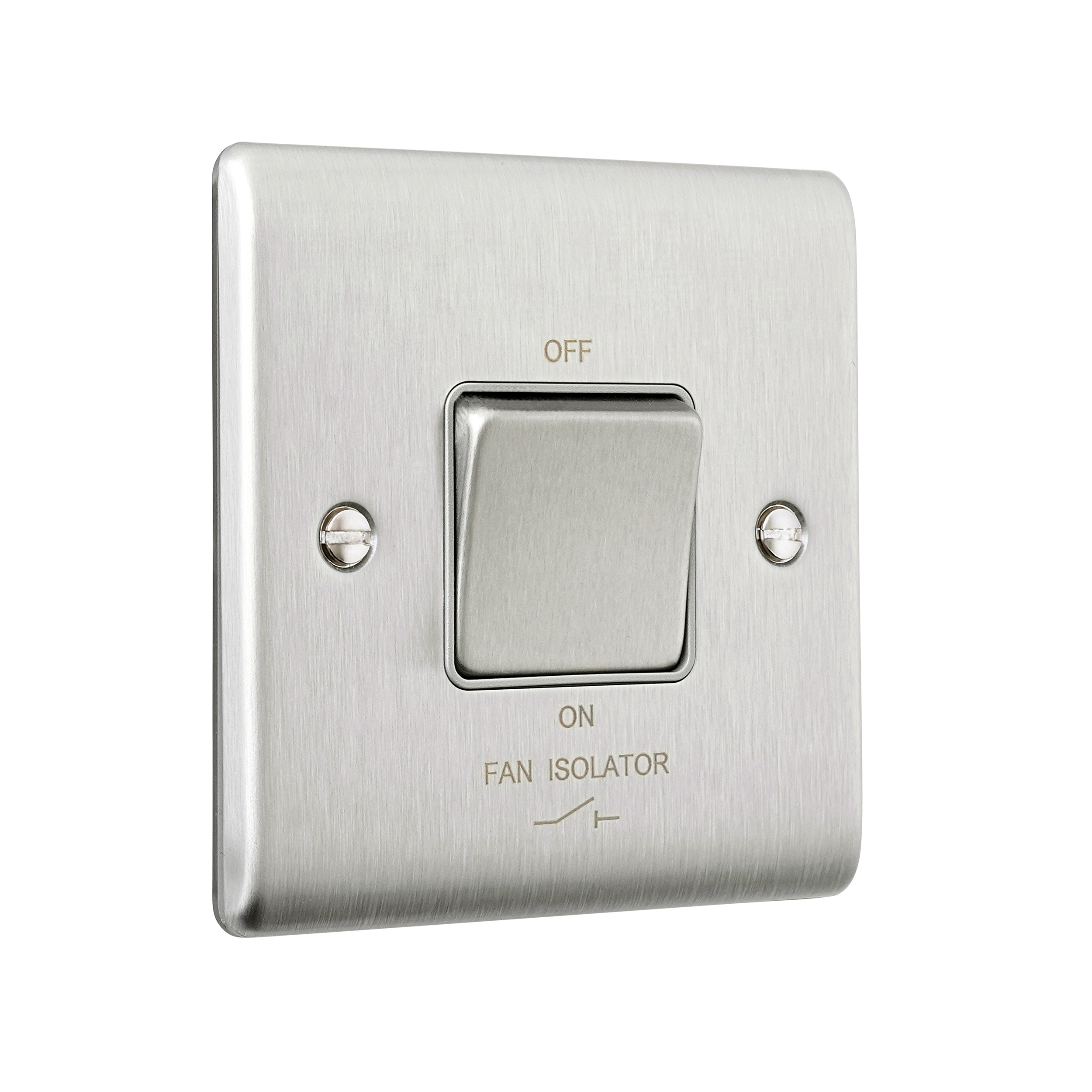 Saxby Electrical Raised Screwed 10AX 1G 3-Pole Fan Isolator Switch Brushed Steel