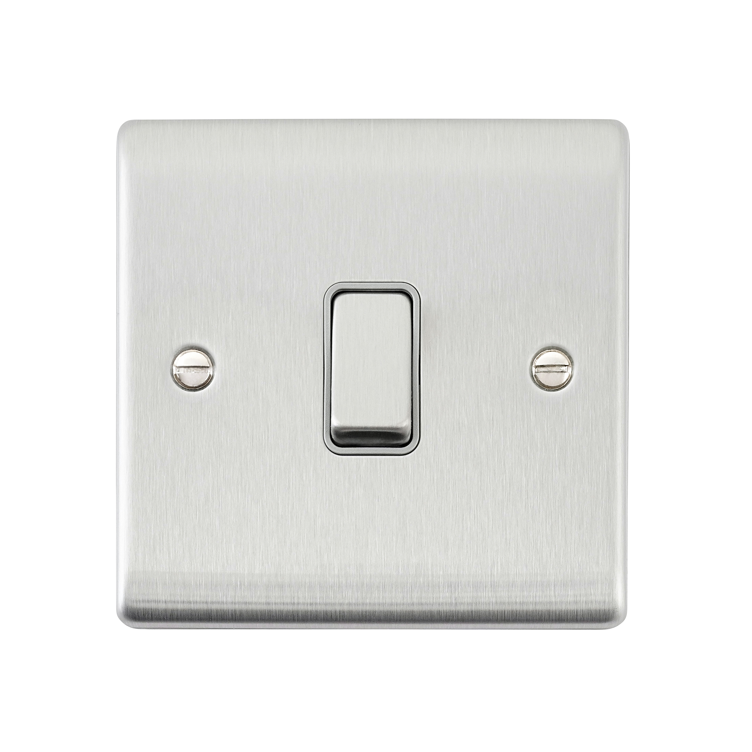 Saxby Electrical Raised Screwed 10AX 1G Intermediate Switch Brushed Steel