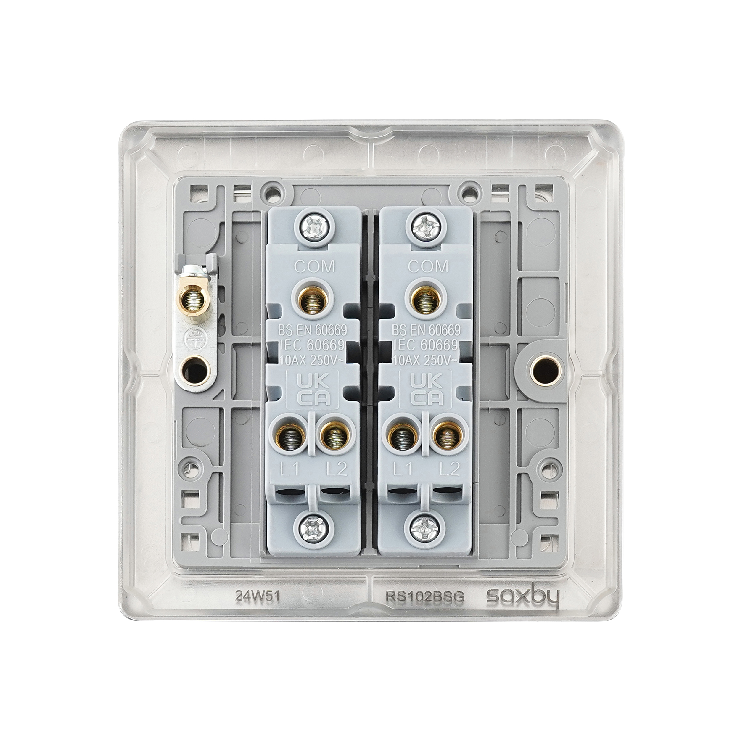 Our 10AX rated switch boasts captive screws which provide for quick, easy and hassle free installation. Supplied with fixing screws. 2 way switching allows for a secondary switch position in the circuit. Moisture gasket as standard to help prevent any moisture transfer to decorative front plate. We recommend a minimum mounting box depth of 25mm