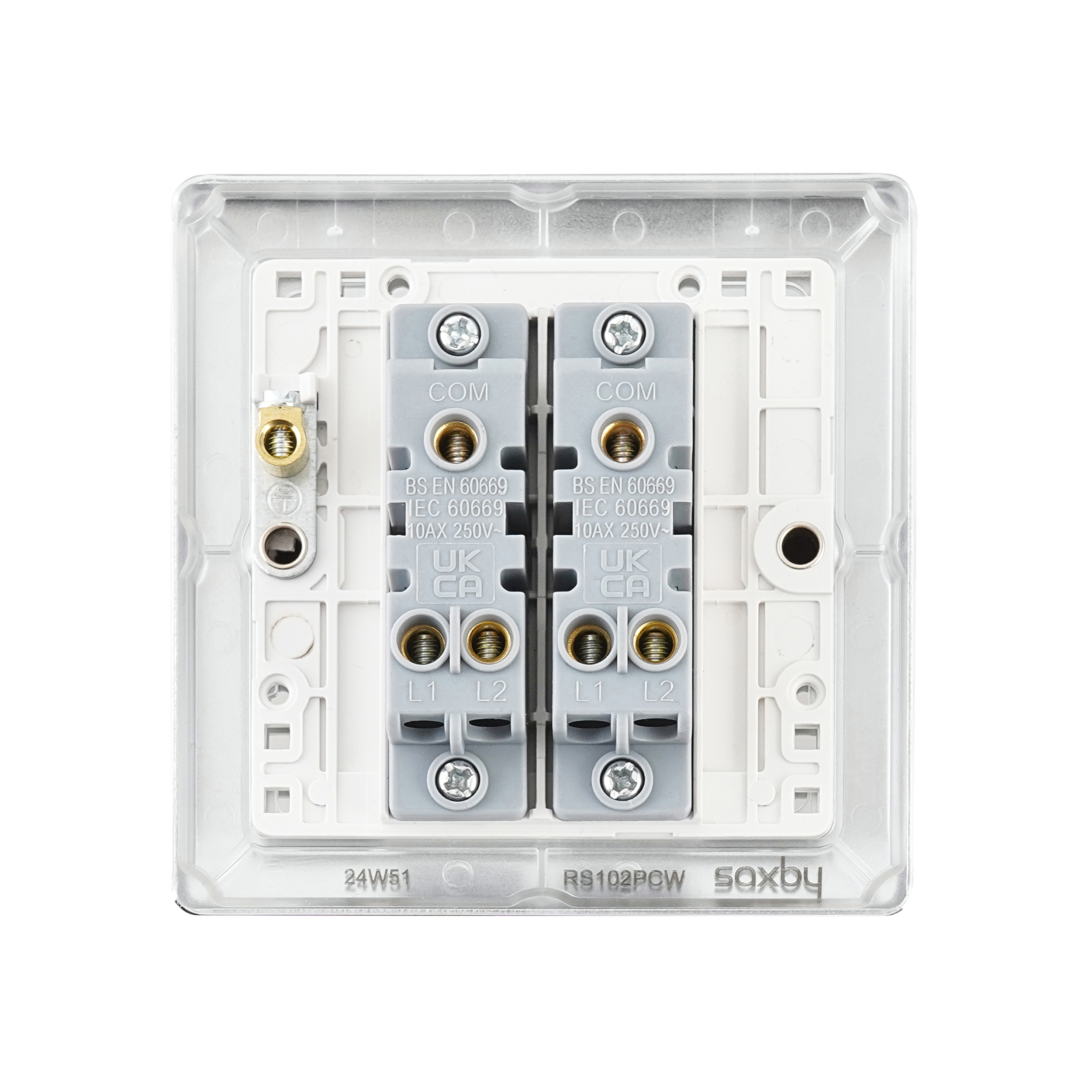 Our 10AX rated switch boasts captive screws which provide for quick, easy and hassle free installation. Supplied with fixing screws. 2 way switching allows for a secondary switch position in the circuit. Moisture gasket as standard to help prevent any moisture transfer to decorative front plate. We recommend a minimum mounting box depth of 25mm