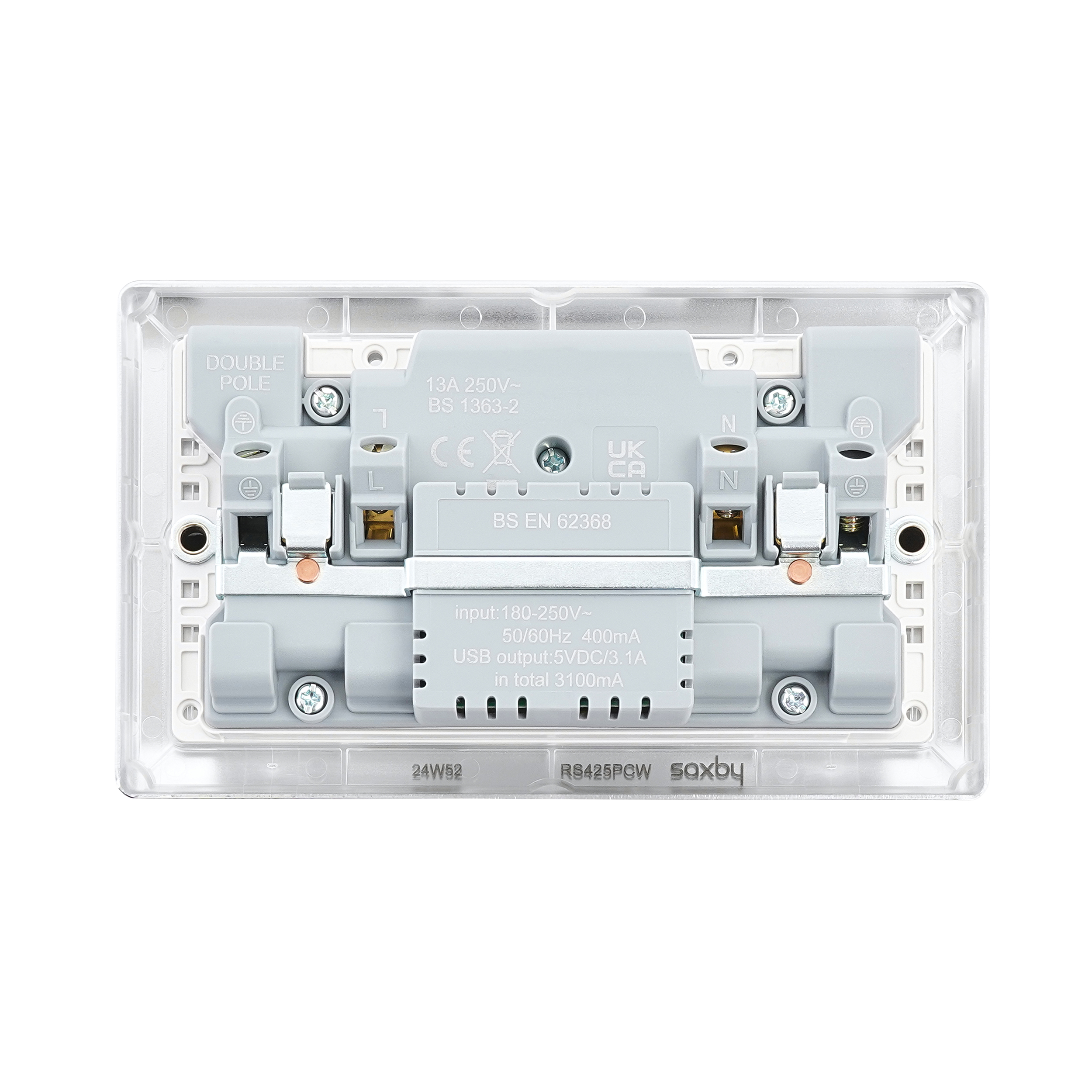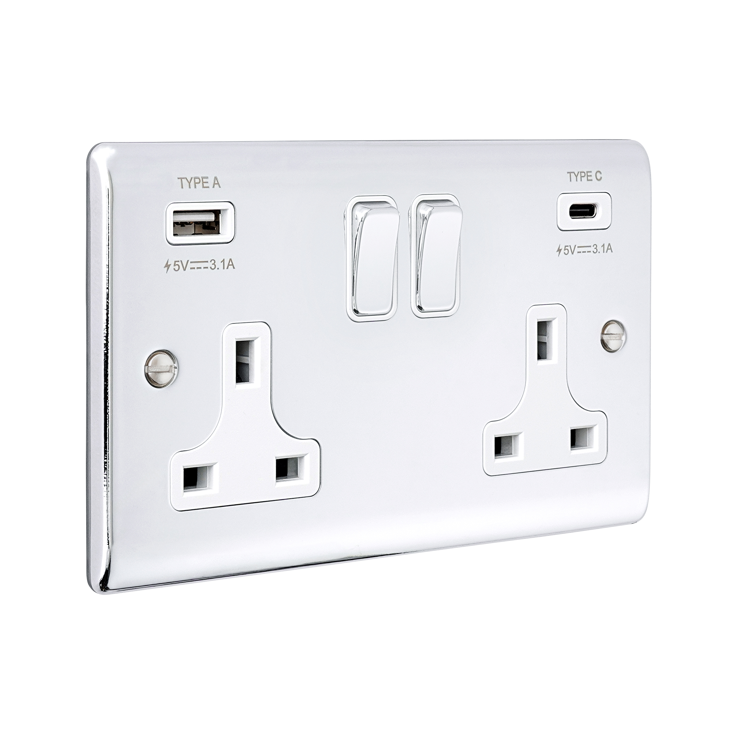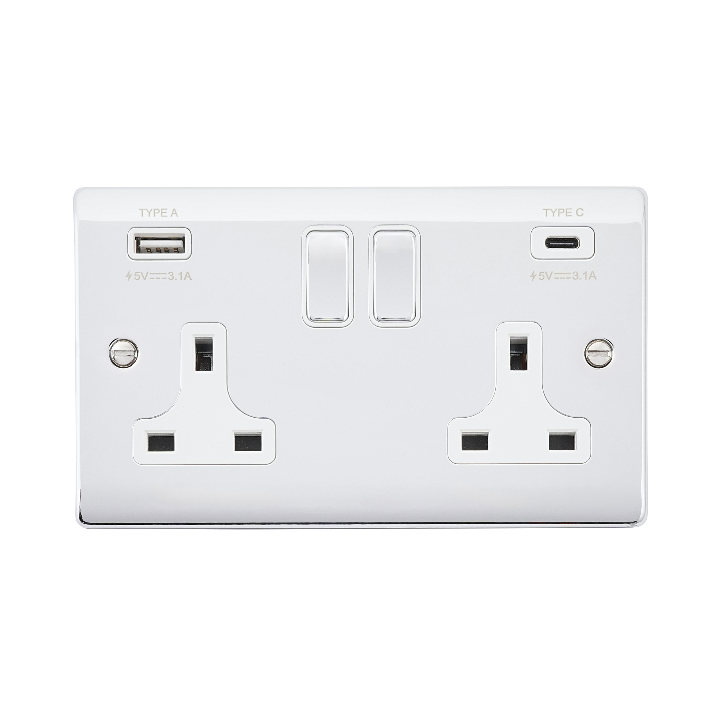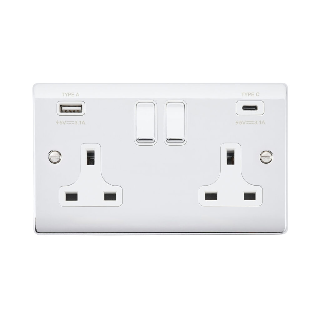Saxby Electrical Raised Screwed 13A 2G DP Socket 15.5W USB A+C Polished Chrome