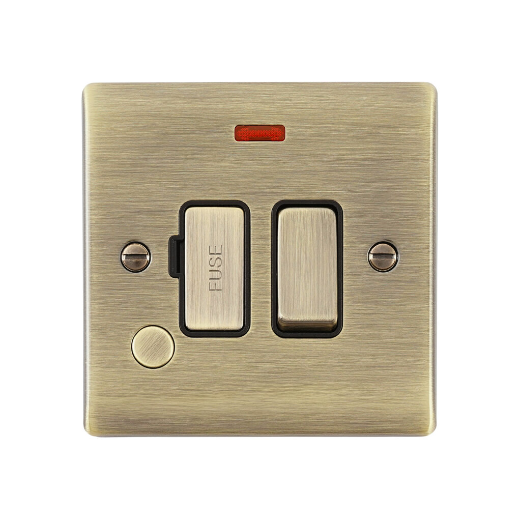 Saxby Electrical Raised Screwed 13A Switched Fused Spur Unit with Flex Outlet and Neon Antique Brass