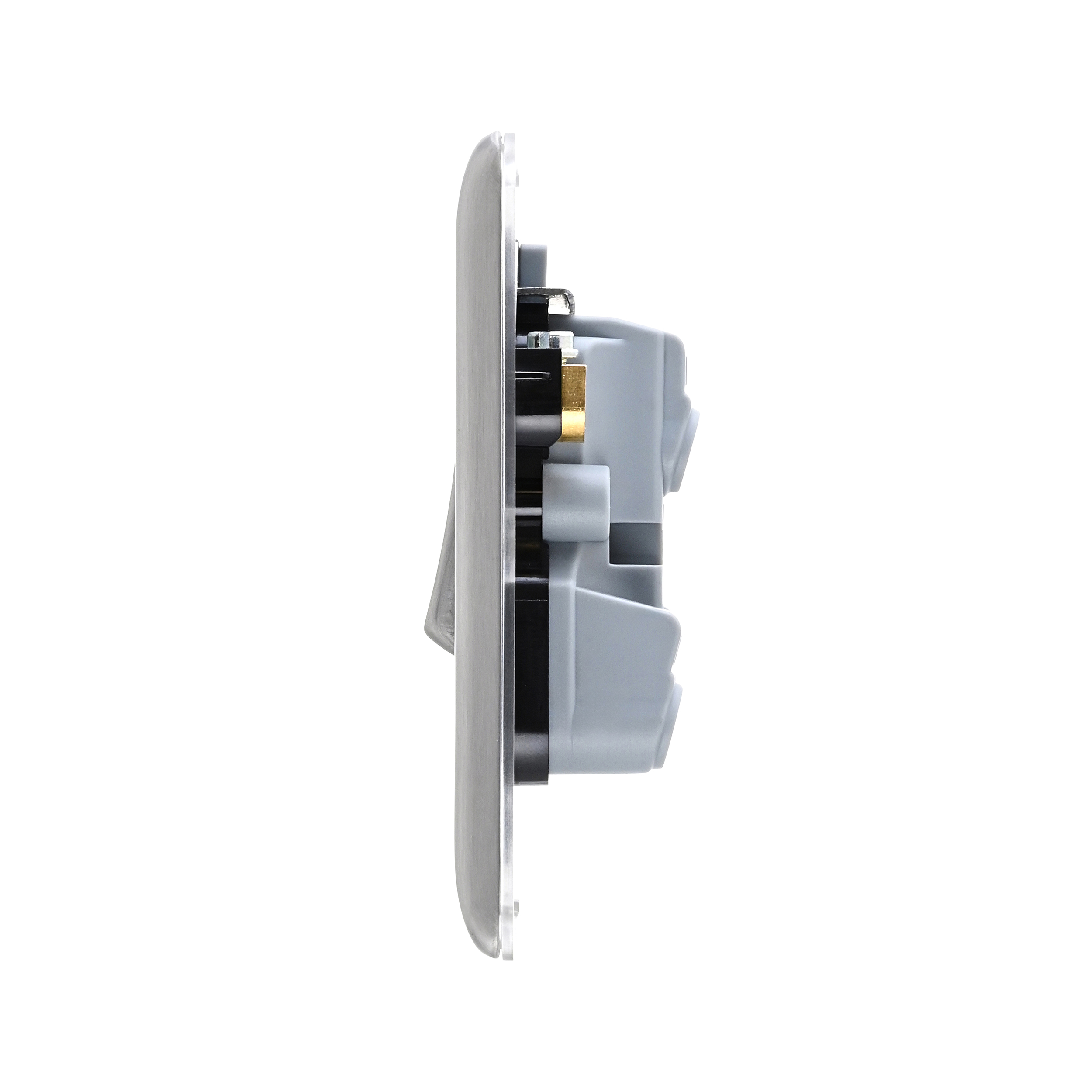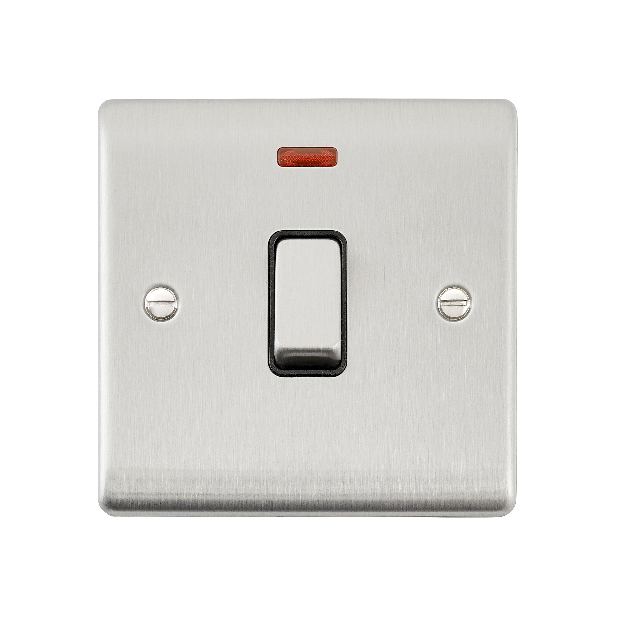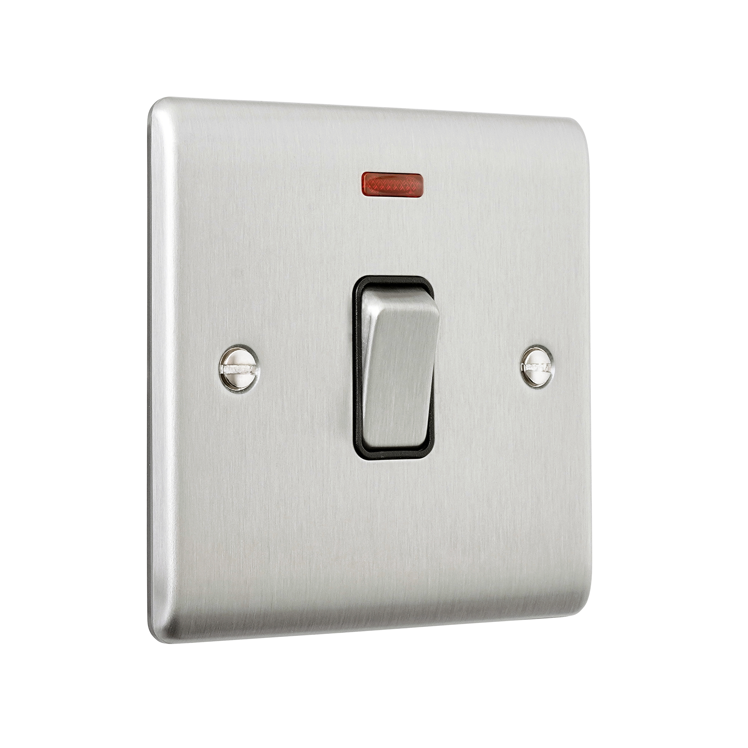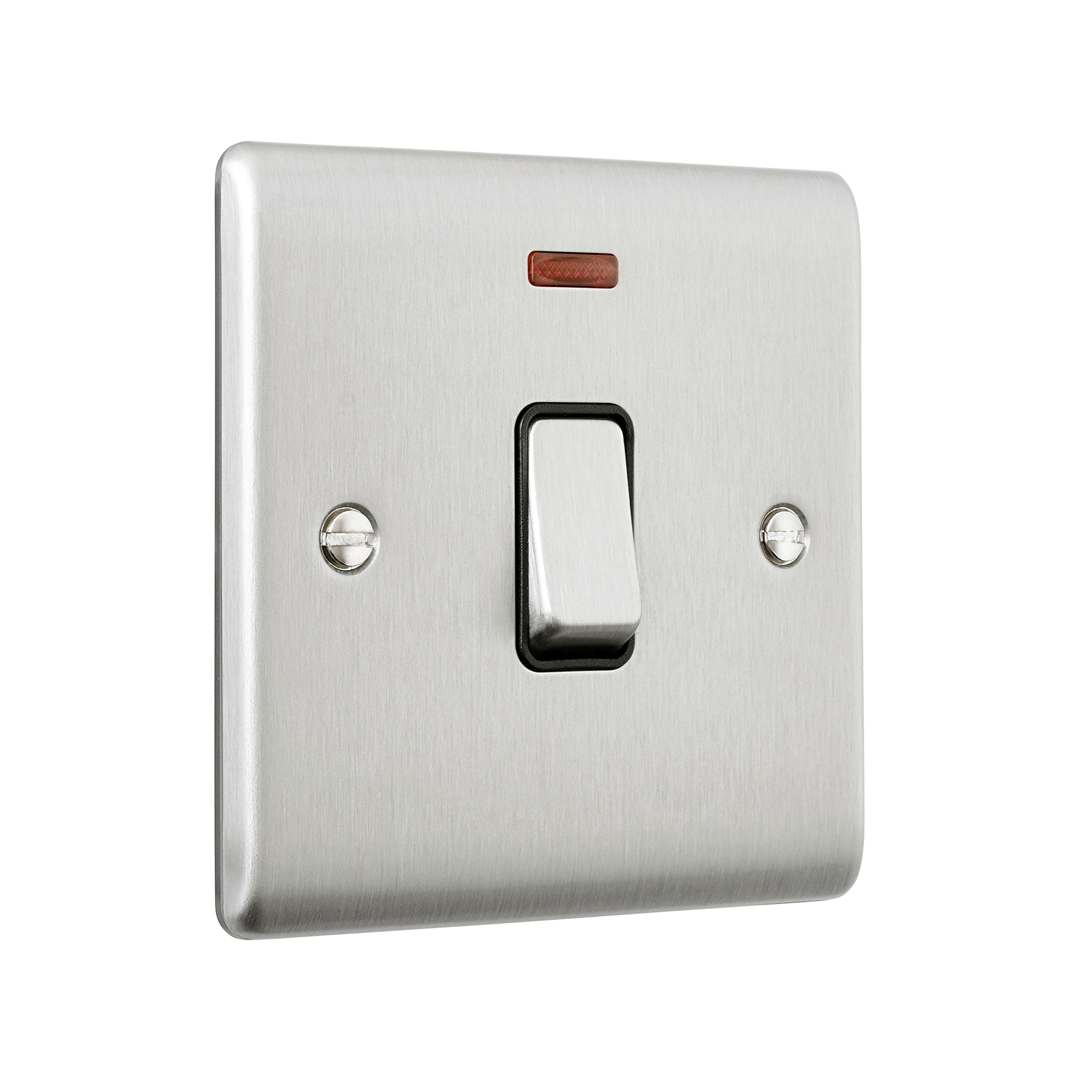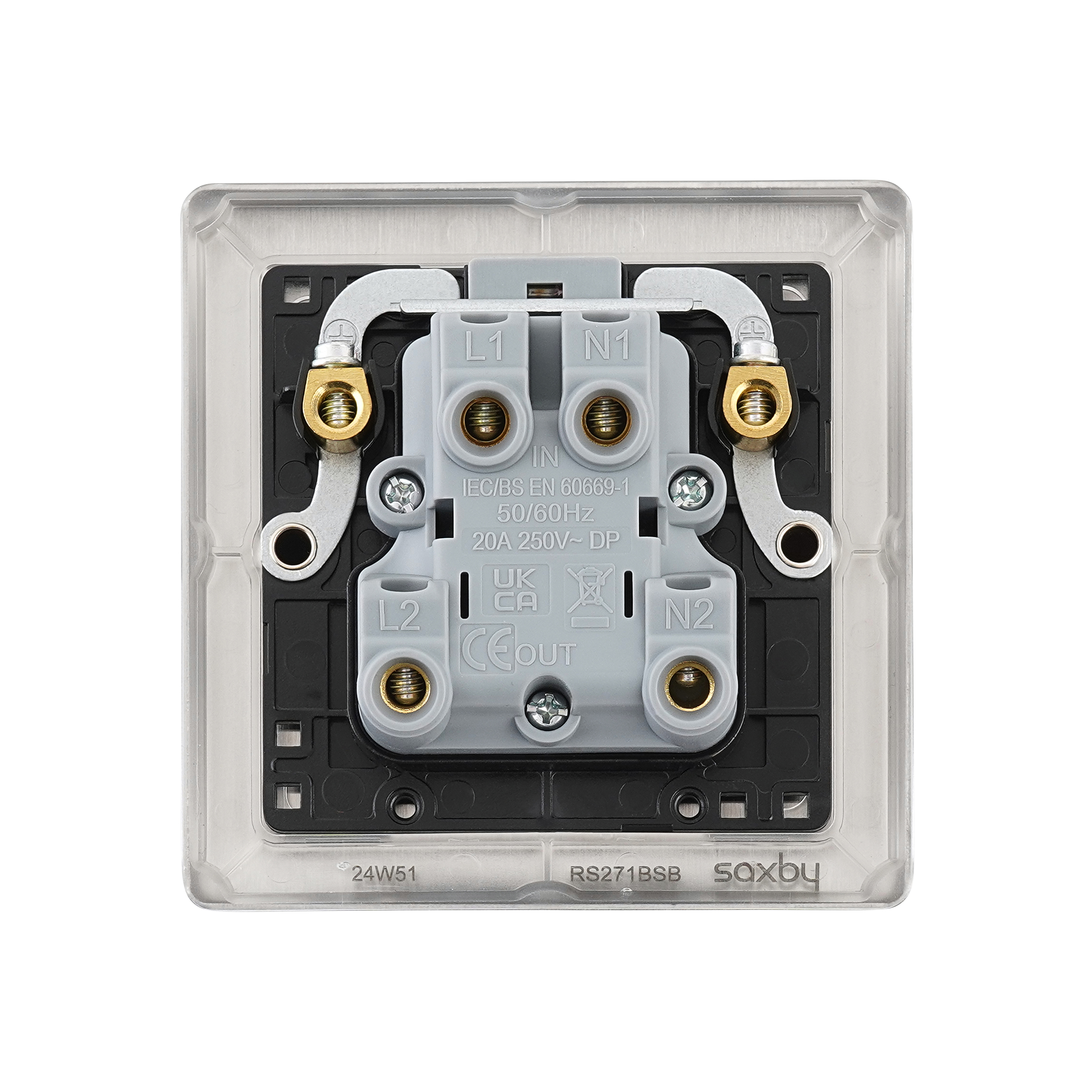 Our 20A rated switch boasts captive screws which provide for quick, easy and a hassle free installation. Supplied with fixing screws. Double pole switching for the peace of mind of a safer installation of your socket. Flush neon power indicator on faceplate. Moisture gasket as standard to help prevent any moisture transfer to decorative front plate