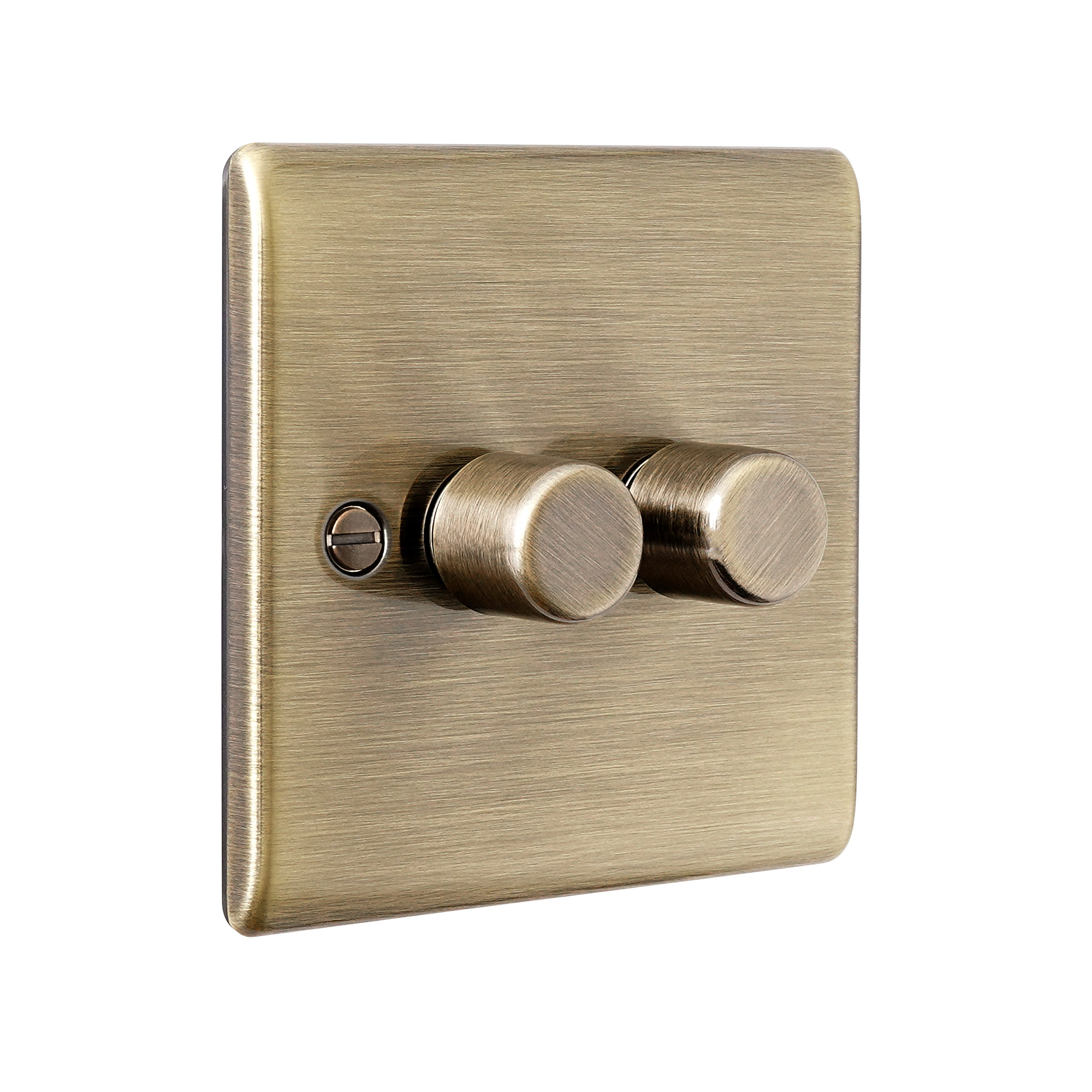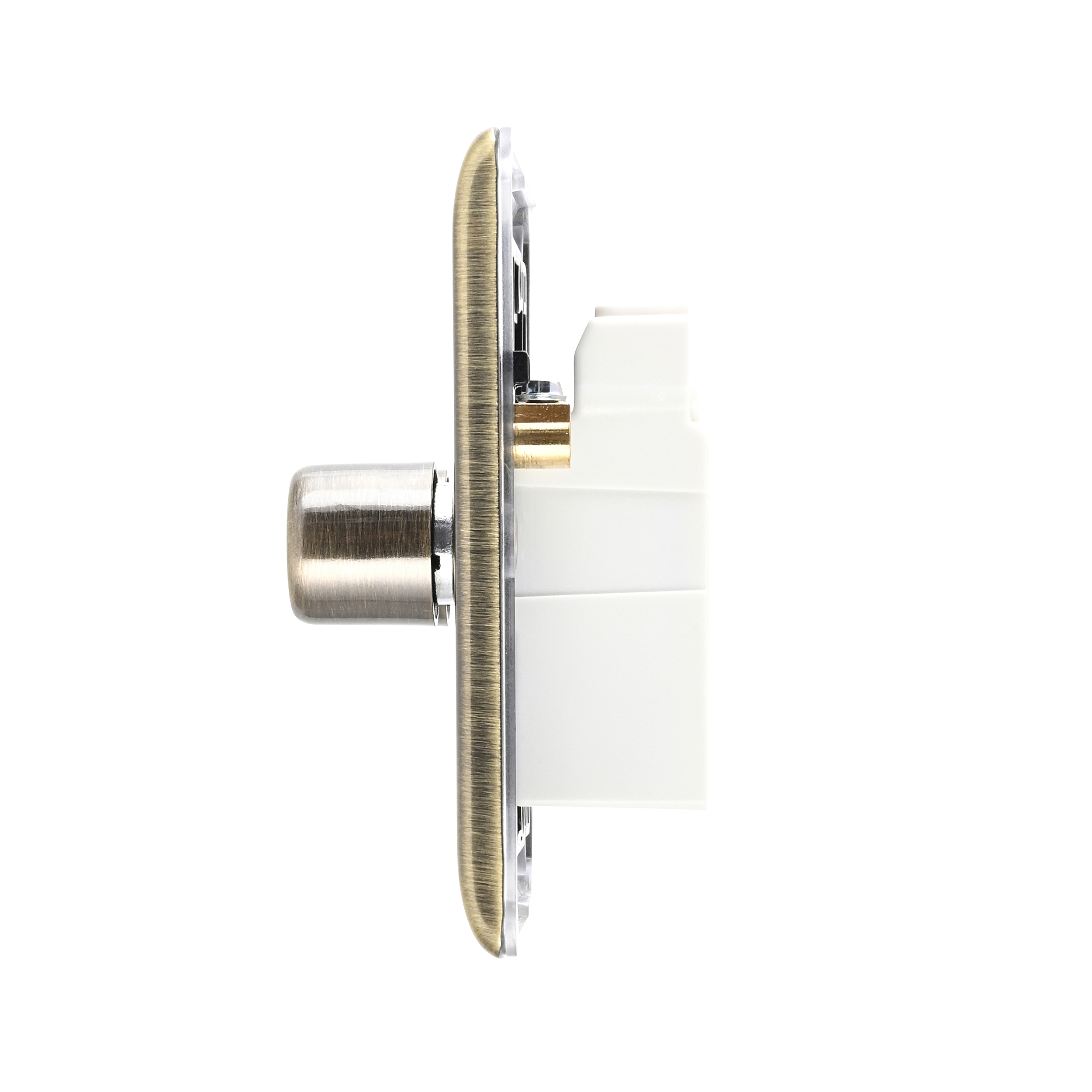 5-100W LED Dimmer. The dimmer module we use is universal, making it the ideal choice for LED, halogen, CFL and incandescent lamps. Supplied with fixing screws. 2 way push on/off with rotary control. Moisture gasket as standard to help prevent any moisture transfer to decorative front plate